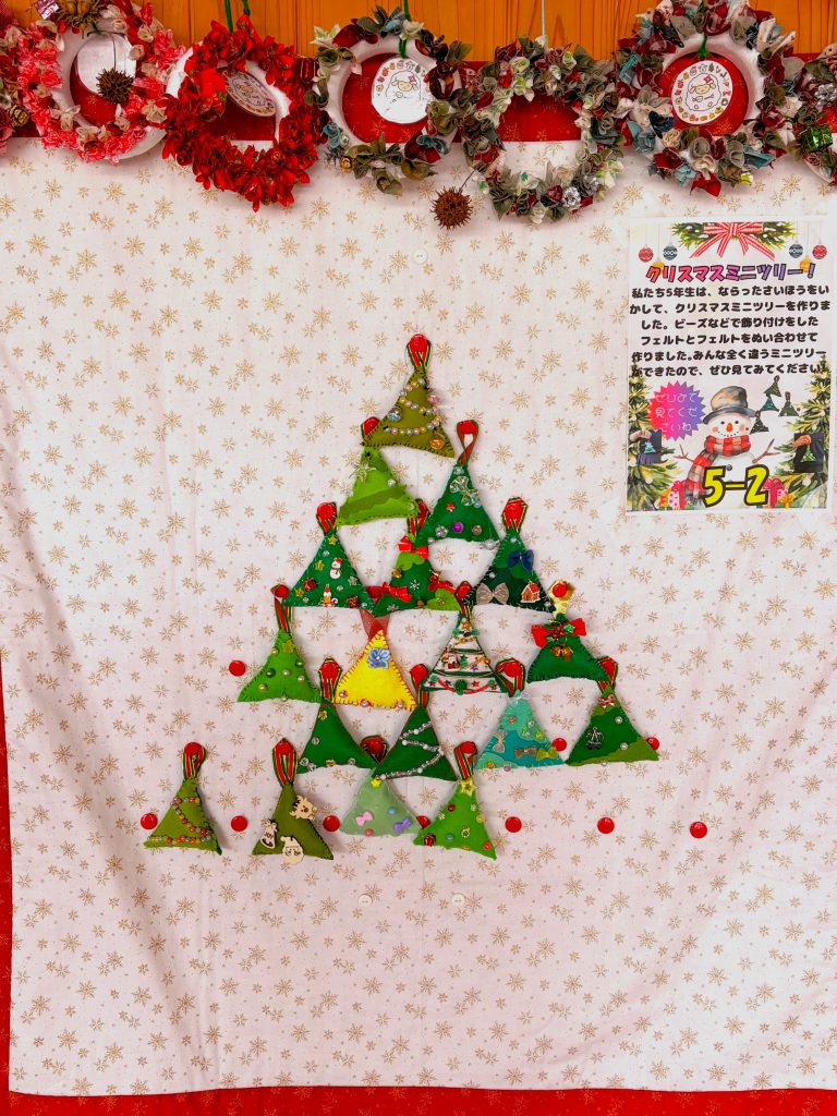5年生はアドベント制作でフェルトでミ二ツリーを作りました🎄