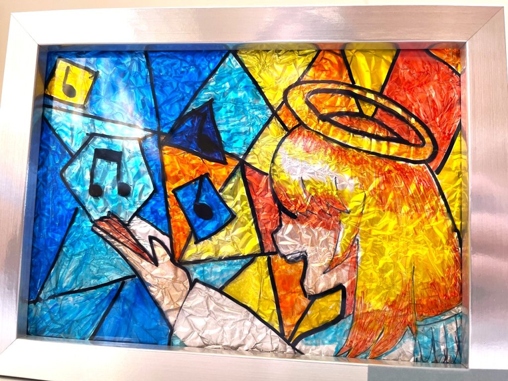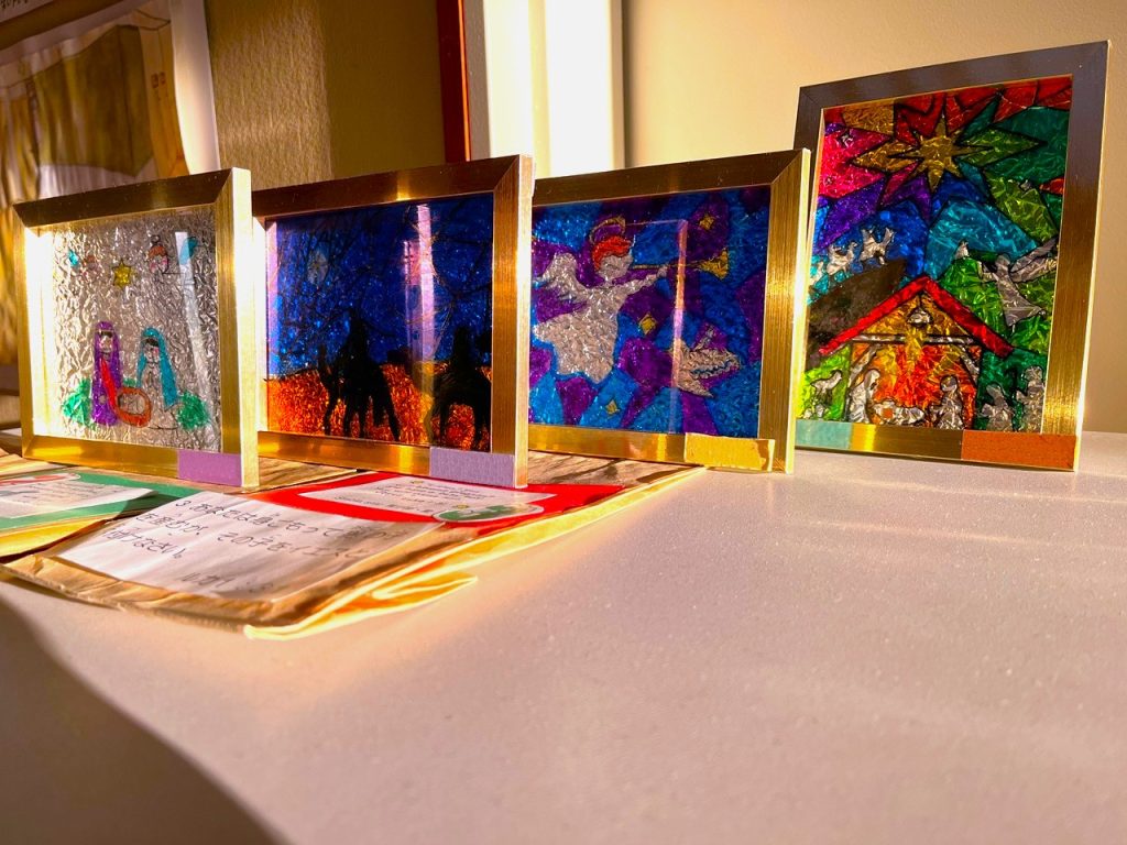 6年生は、アドベント制作で「ステンドグラス」をつくりました✂️アドベントにそった絵のステンドガラスです💫